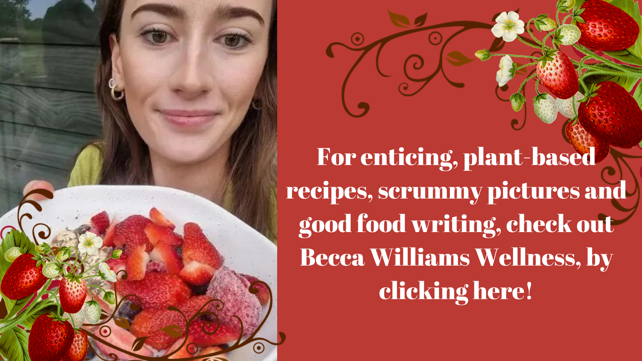 For as long as I have known her, Becca has been an exceptional cook. Our families were very close when we grew up. So much so, that we still refer to each other as cousins. I remember peeling potatoes and kumaras with her in the William's large, family kitchen, at the long oak table for the Sunday lamb roast. The wood range flicked cosily across the flagstone floor as the ever-present New Zealand rain glided down the windows. What made her switch to a plant-based diet, I wonder?