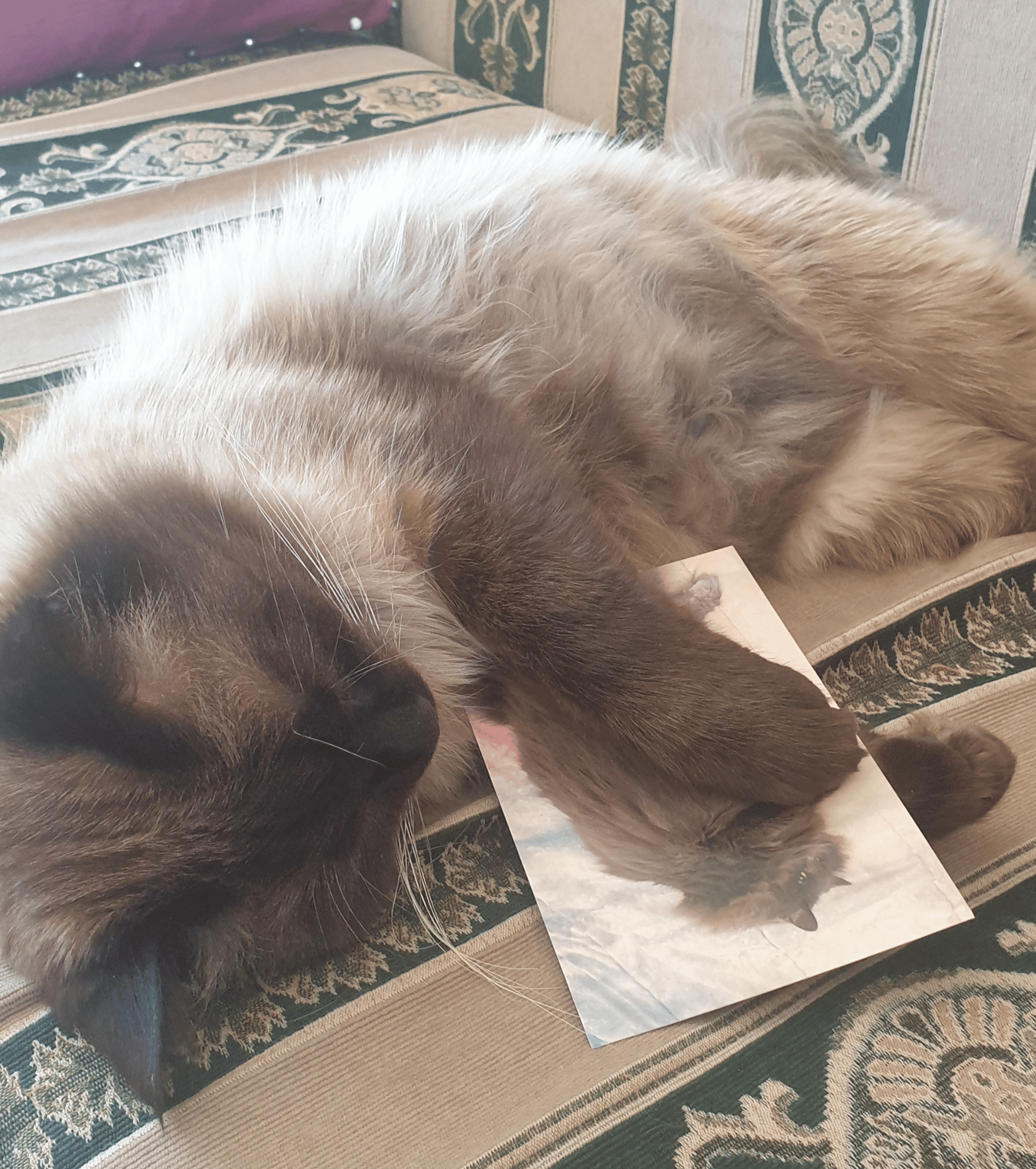 “Oh, he overate again, Mum. I can’t handle him right now and I don’t want to clean up any more cat vomit!”