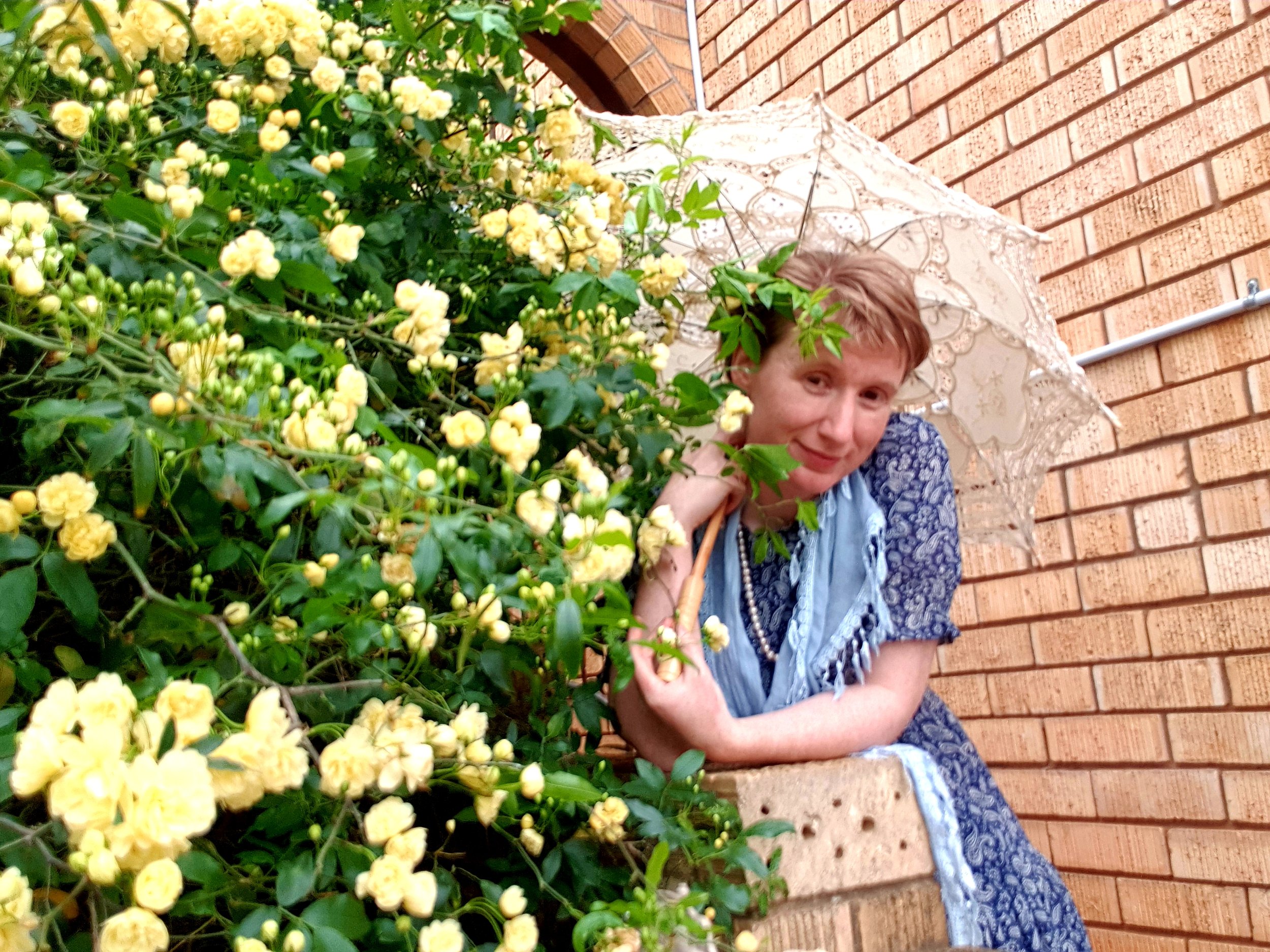 The rose was almost spent. Lady Banks doesn’t flower for very long. But I liked the pictures, and I kept them on my phone. A few years later, I posted one of the pictures to my Instagram. And an author from New York, called Marion Grudko, who I did not know, left a comment on it.